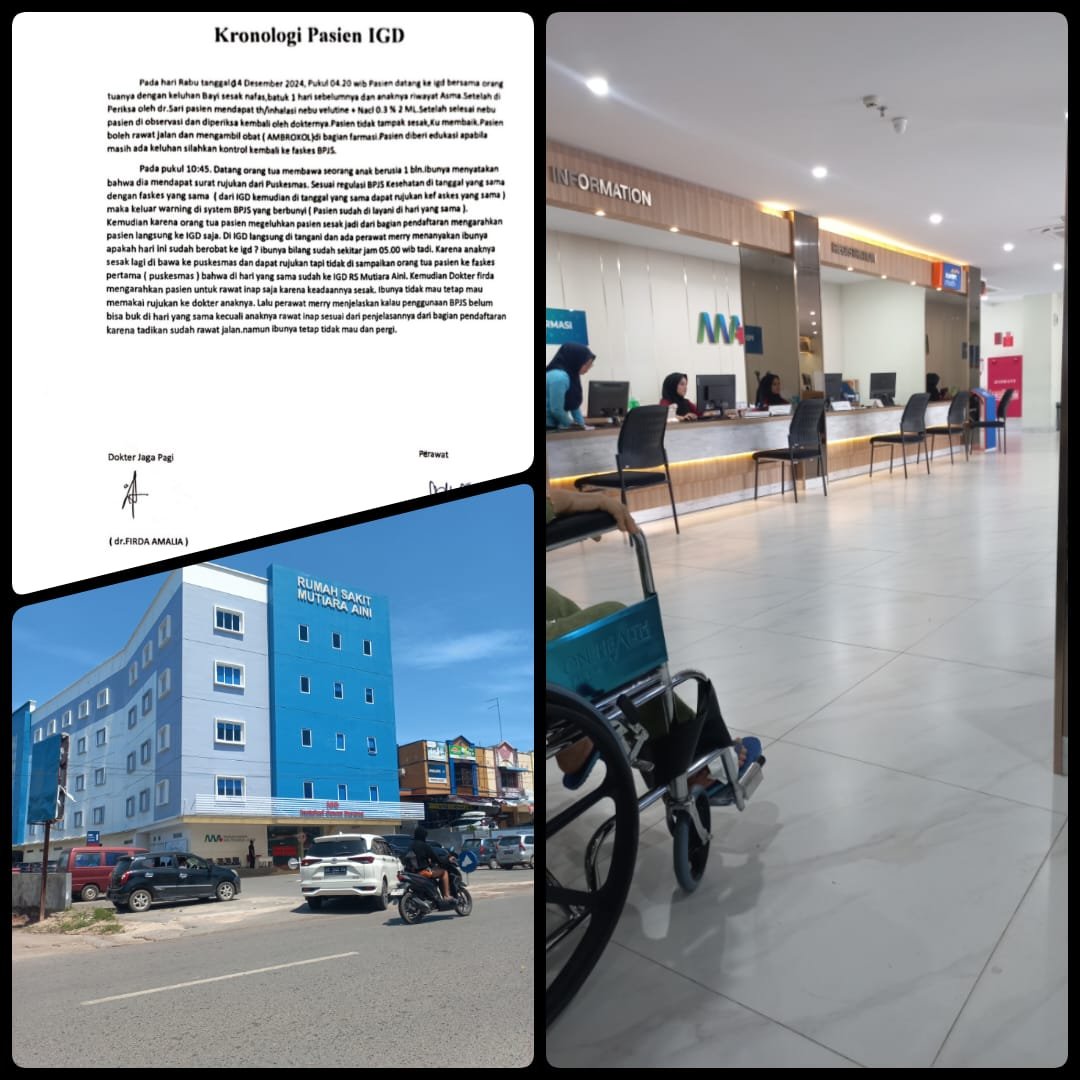 Surat rujukan dari Puskesmas pun ke Poli anak RS Mutiara Aini ditolak juga pihak pindaftaran, tindakan yang membuat masyarakat terancam dengan situasi Rumah Sakit seperti ini.