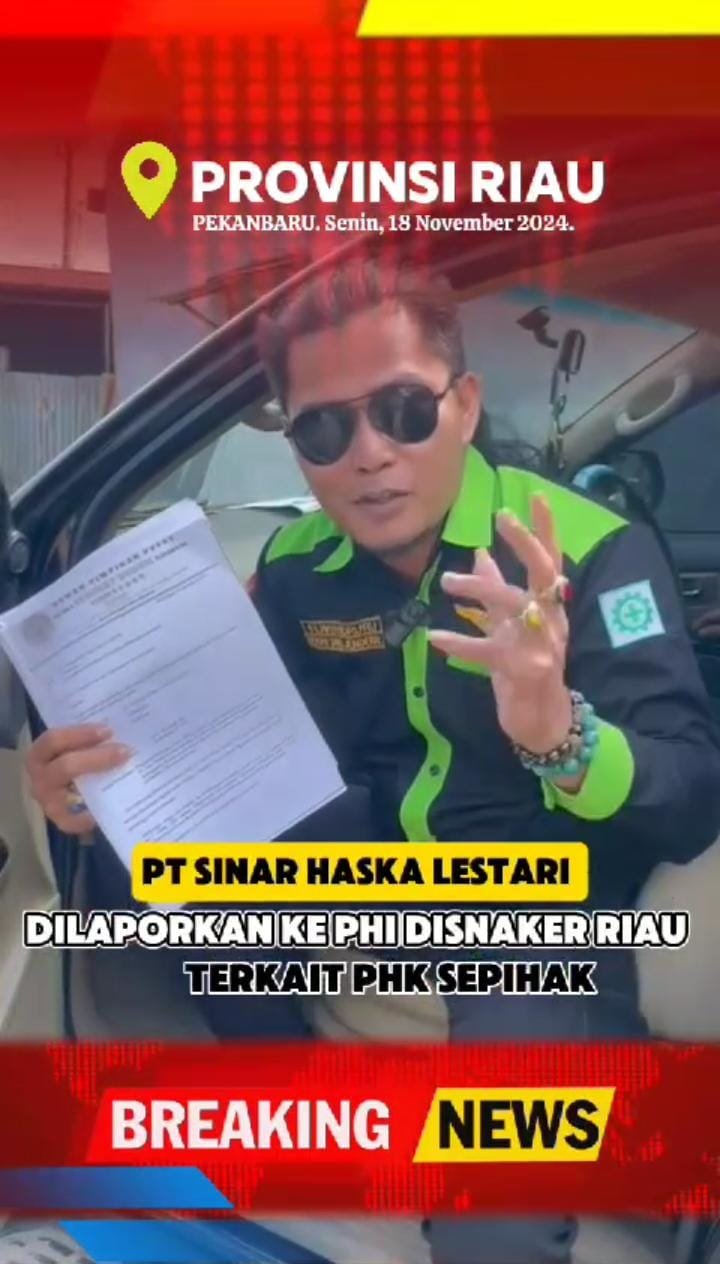 Adapun perkara PHK sepihak yang dilakukan oleh perusahaan PT Sinar Haska Lestari (SHL) terhadap karyawan atas nama Kelvin Ndruru yang mengalami kecelakaan kerja, kata Ramli, yang mana telah dilaporkannya melalui Dewan Pimpinan Pusat Suara Serikat Buruh Nasional ke Dinas Tenaga Kerja dan Transmigrasi Provinsi Riau pada Tanggal 8 November 2024.