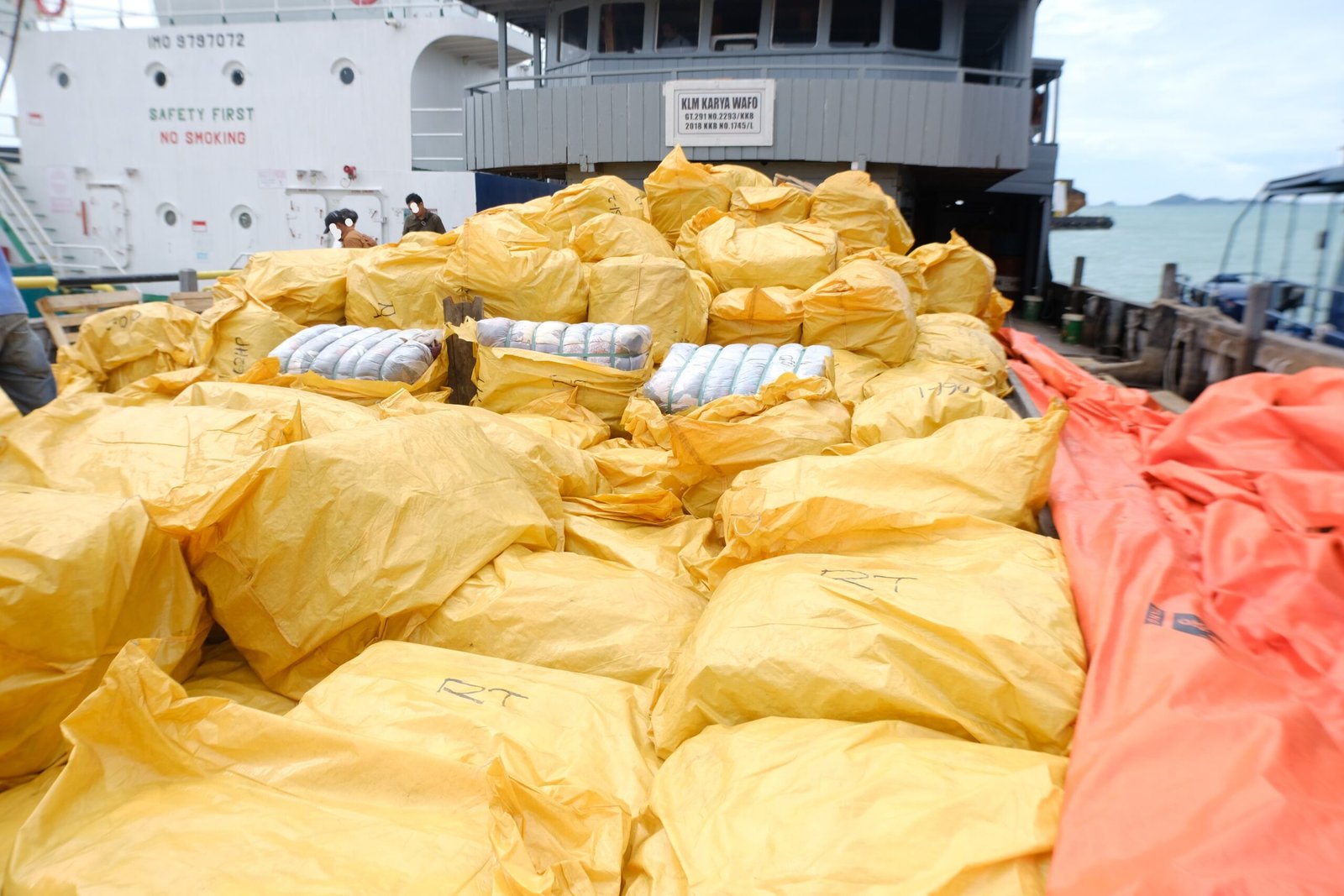 Kapal KLM Karya Wafo dengan muatan tekstil, ban, dan minuman kesehatan senilai Rp 4,3 miliar.