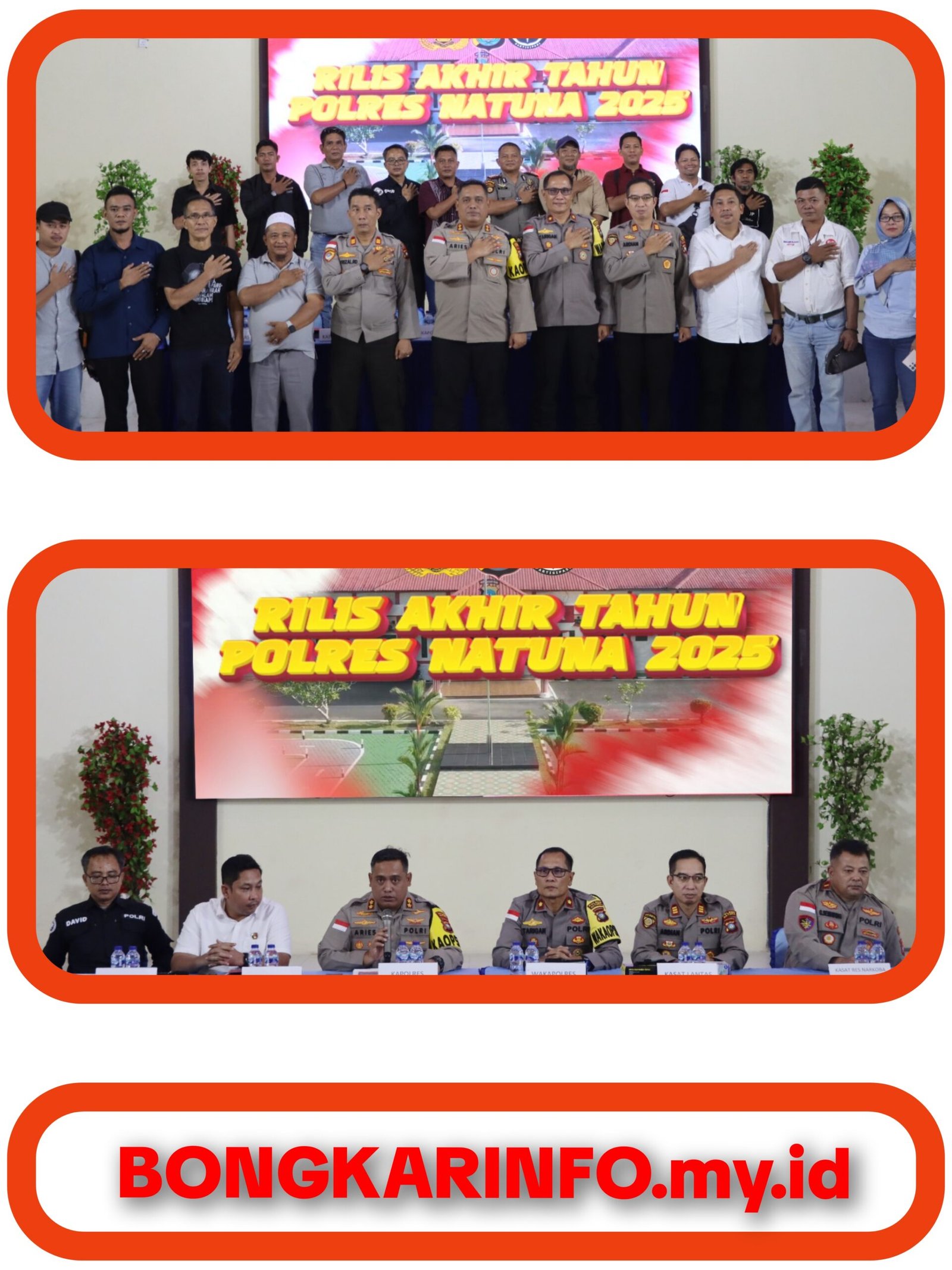 Natun –Bongkarinfo.my.id || Kepolisian Resor (Polres) Natuna menggelar Release Akhir Tahun 2025 yang dipimpin langsung oleh KapolresNatuna AKBP Novyan Aries Efendie.,SH.,S.I.K.,M.M.,M.Tr.Opsla didampingi Wakapolres Natuna serta Pejabat Utama (PJU), bertempat di Mapolres Natuna, Selasa (30/12/2025).